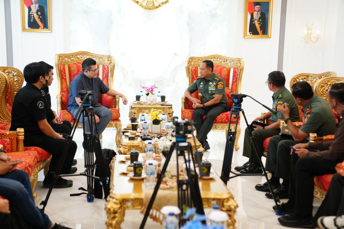 Investigasintb.com – Puspen TNI Panglima TNI Jenderal TNI Agus Subiyanto didampingi Kapuspen TNI Mayjen TNI Dr. Nugraha Gumilar, M.Sc., Dansatsiber TNI Brigjen TNI Ari Yulianto dan Pagassus Humas Panglima TNI Brigjen TNI (Mar) Fredy Ardiansah menerima audiensi Alfito Deannova, Wakil Pemberdayaan Elvan Dany, Kepala Divisi Planning Shandi A, Kepala Divisi Kolaborasi Tria H dan Redaktur Isfari, dengan agenda membahas penyelenggaraan Soedirman Award ke-2 tahun 2024, bertempat di ruang kerja Panglima TNI, Mabes TNI Cilangkap, Jakarta Timur, Senin (8/1/2024).