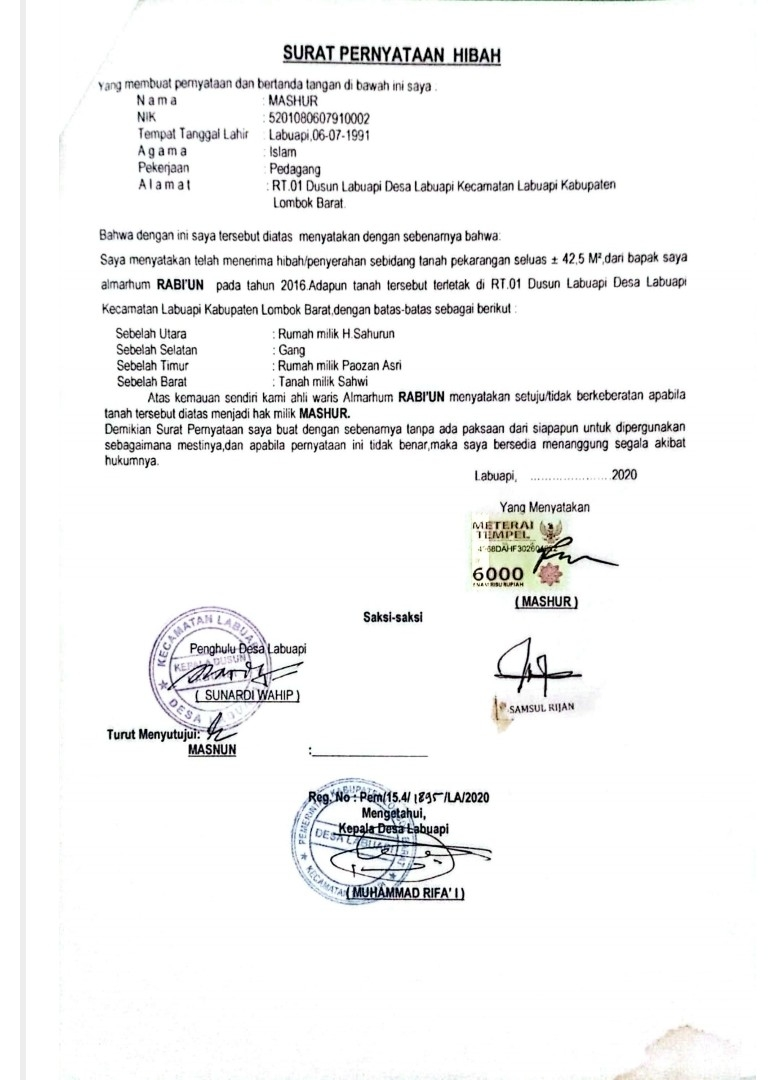 Investigasintb.com – Lombok Barat. Salah satu perangkat Desa Labuapi Kecamatan Labuapi Kabupaten Lombok Barat. Pemalsuan diduga dilakukan di salah satu dokumen penting yang mengakibatkan kerugian bagi salah satu pihak selaku ahli waris atas sebidang tanah yaitu Nurjanah. Nurjanah selaku ahli waris begitu mengetahui bahwa tanah milik saudarinya [almarhumah] di wariskan ke anak tirinya [anak sambung] tanpa sepengetahuannya dengan sigap melakukan langkah hukum dengan melaporkan perampasan hak atas tanah waris tersebut di dampingi oleh kuasa hukumnya H. Napsin, SH.